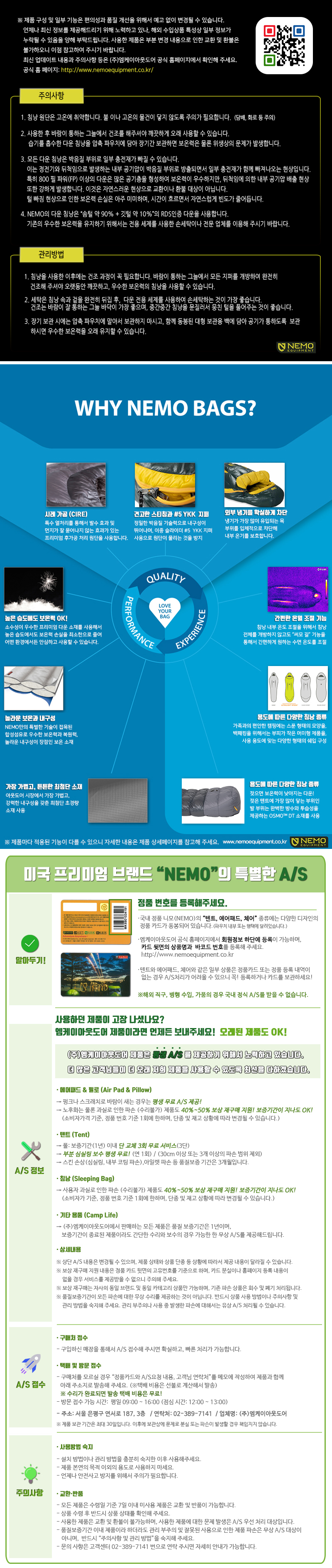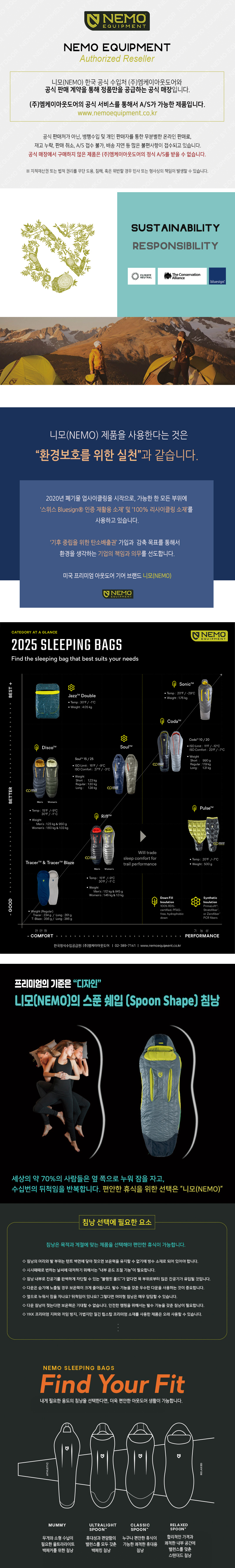 하이드로포빅 다운 사용으로 습기가 높은 날씨에도 최고의 보온력을 유지하는 기능성 다운 침낭