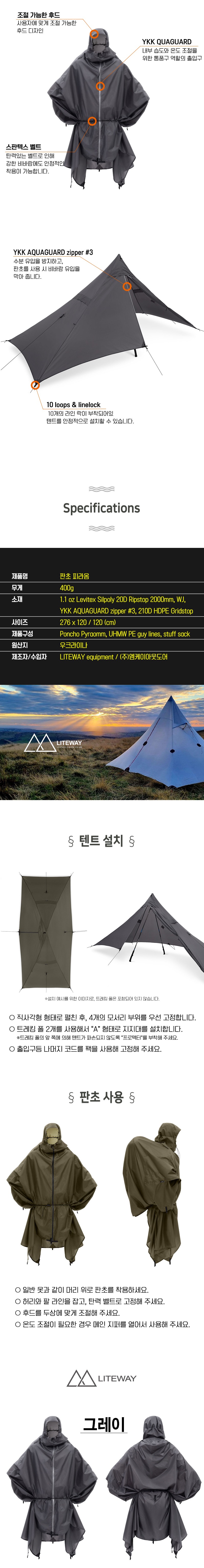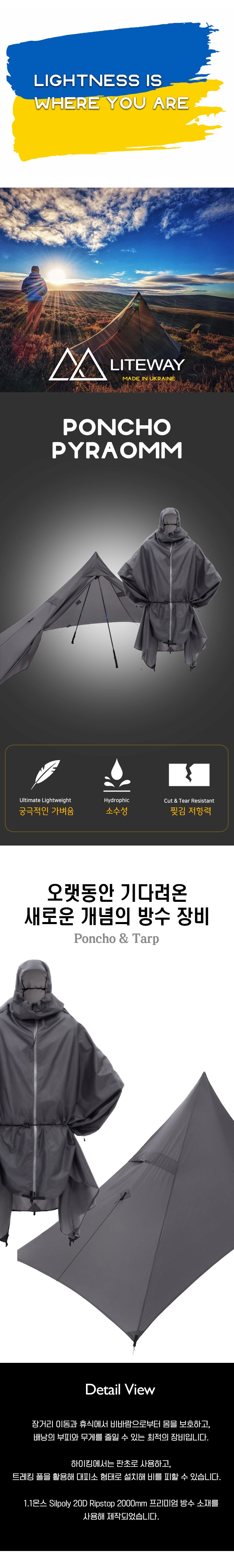 "판초와 타프" 두 가지 형태로 사용 가능한 경량 방수 장비