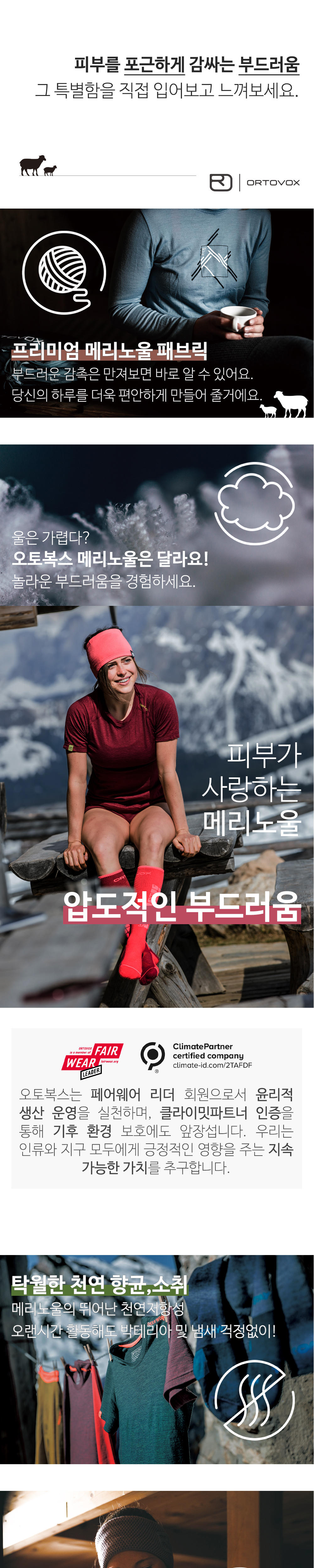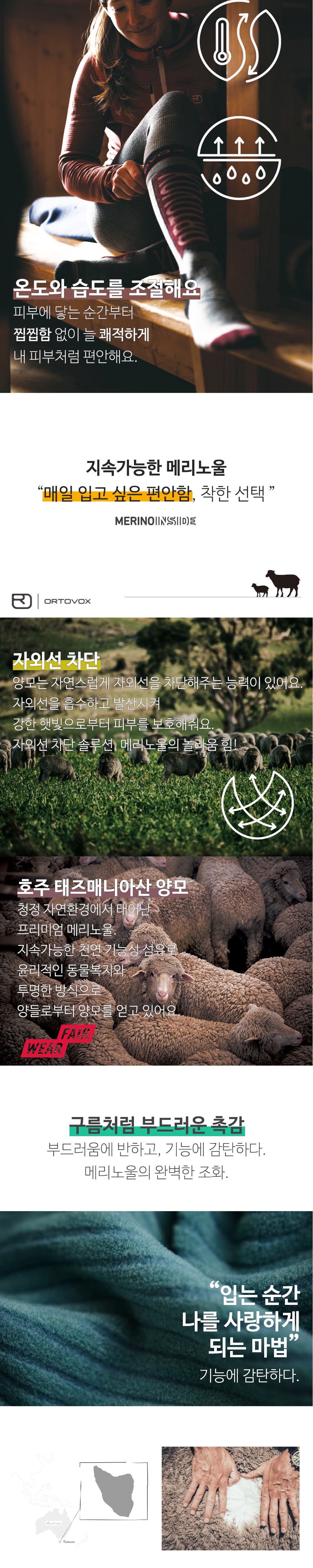 혁신적인 150 메리노 쿨 소재는 편안하고 부드러운 메리노 울이 체온과 습기를 조절하고, 지속 가능한 방식으로 생산된 텐셀™ 리오셀 셀룰로오스 섬유는 매끄러운 표면구조로
